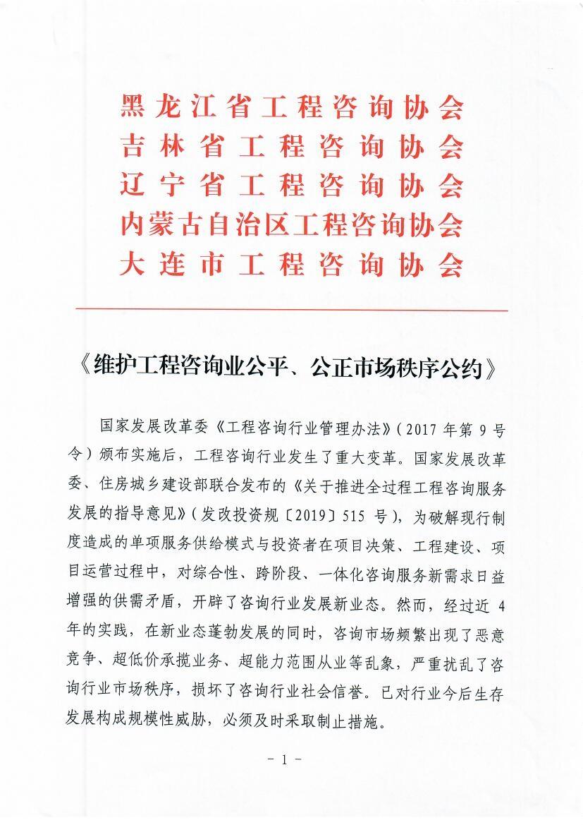 《維護(hù)工程咨詢業(yè)公平、公正市場(chǎng)秩序公約》