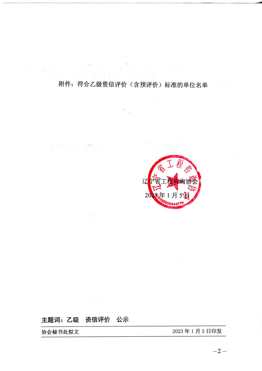 遼寧省2022年工程咨詢單位乙級(jí)資信評(píng)價(jià)(含預(yù)評(píng)價(jià))結(jié)果公示