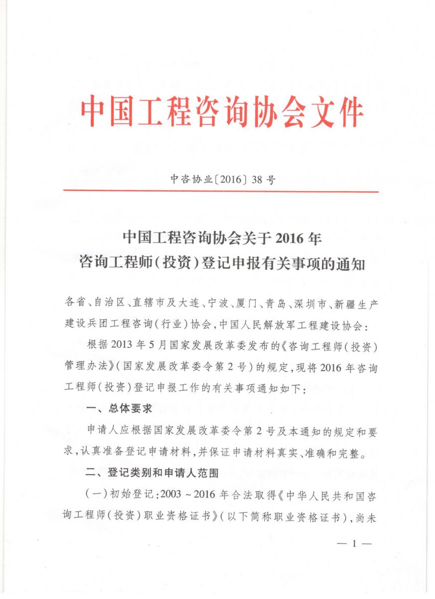 中國工程咨詢協(xié)會關(guān)于2016年咨詢工程師(投資)登記申報(bào)有關(guān)事項(xiàng)的通知