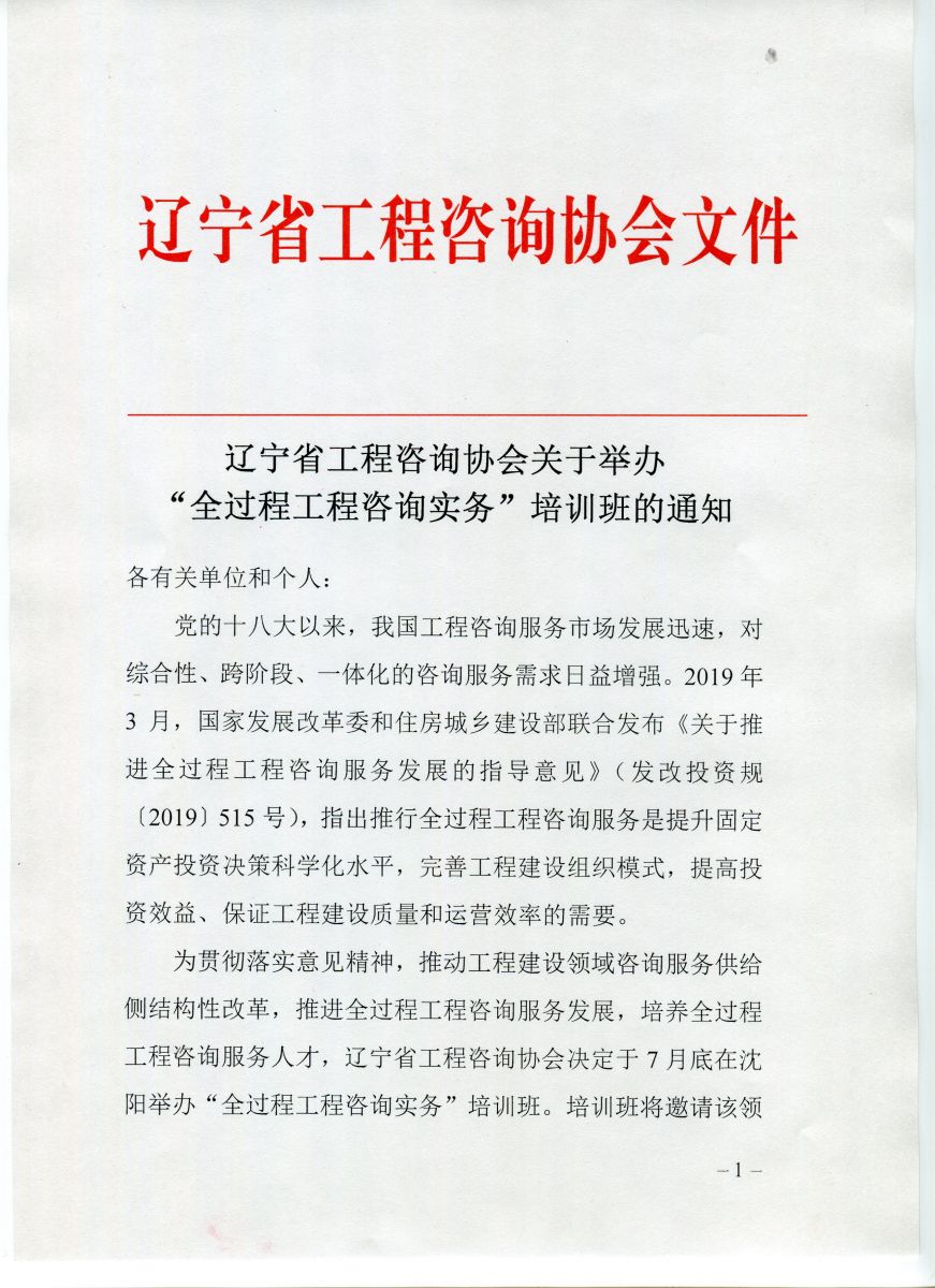 遼寧省工程咨詢(xún)協(xié)會(huì)關(guān)于舉辦 “全過(guò)程工程咨詢(xún)實(shí)務(wù)”培訓(xùn)班的通知