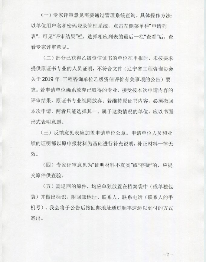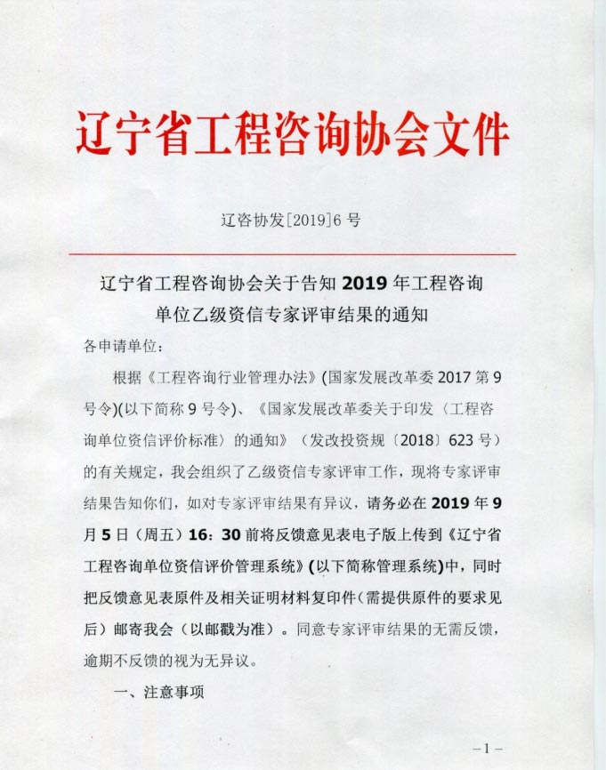 遼寧省工程咨詢協會關于告知2019年工程咨詢 單位乙級資信專家評審結果的通知