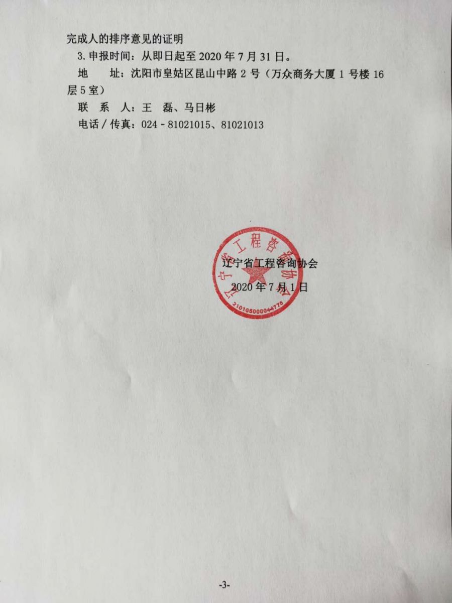 遼寧省工程咨詢協(xié)會(huì)關(guān)于2020年 工程咨詢單位乙級(jí)資信評(píng)價(jià)有關(guān)事項(xiàng)的公告