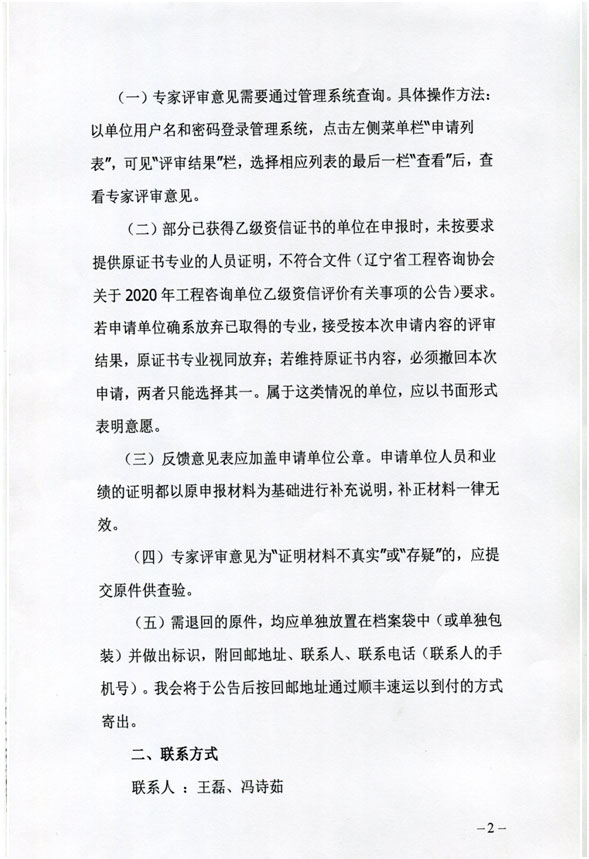 關于告知2020年工程咨詢單位乙級資信專家評審結果的通知